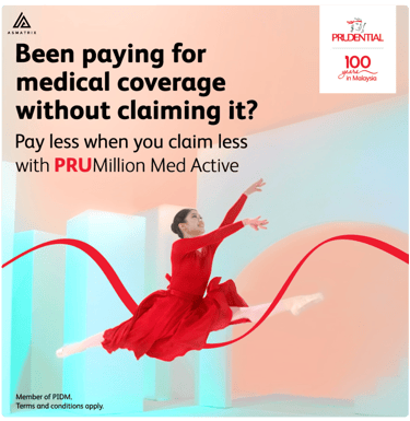 Additionally, the plan rewards you with up to RM1,000 annually for preventive health services, including health screenings and vaccinations, if no claims are made. PRUMillion Med Active ensures you live worry-free and embrace life to the fullest.