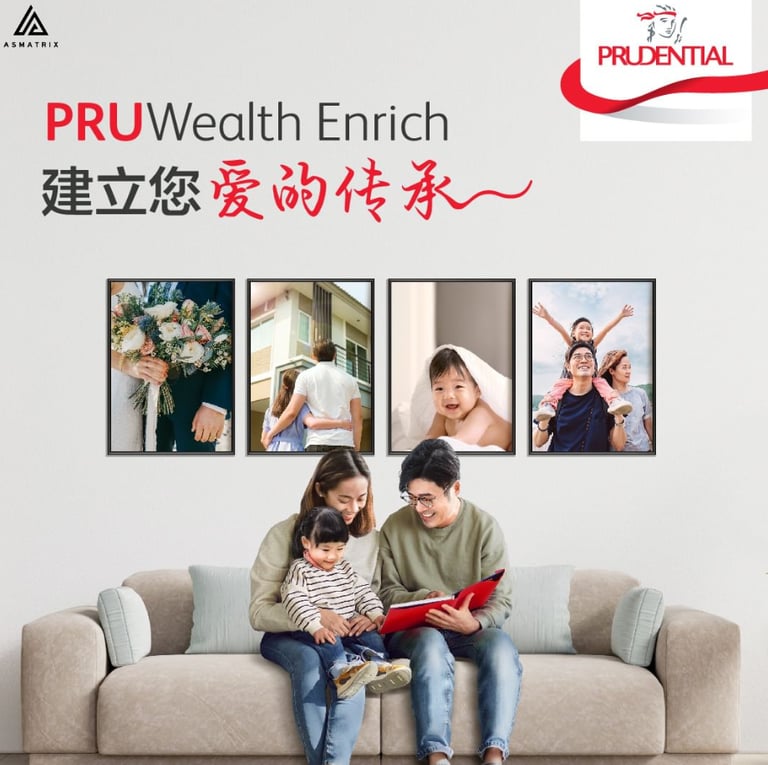 PRUWealth Enrich 专为财富增值、寿命保障与长期财务规划设计的保险方案,提供灵活的储蓄与投资选择,帮助您实现财务增长与资产传承,让未来更加稳健无忧。
