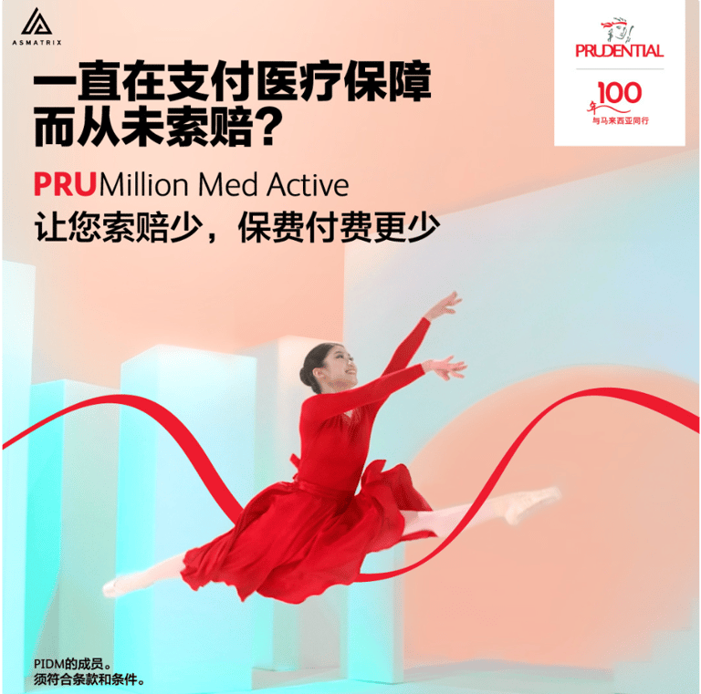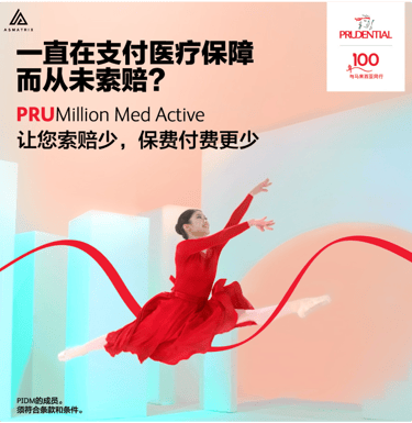 此外,计划还提供无索赔奖励,每年高达 RM1,000,可用于健康检查、疫苗接种等服务,激励您保持健康。PRUMillion Med Active,助您健康无忧,享受生活每一天。